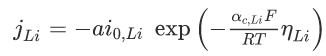 (1)石墨脱嵌锂反应可用Butler-Volmer 方程描述,即: